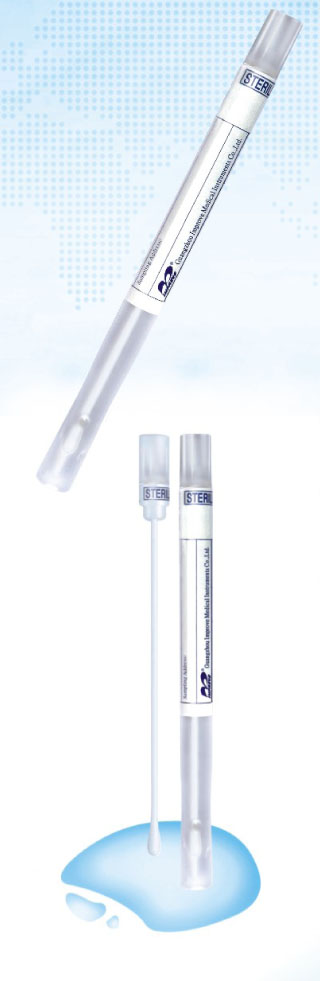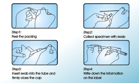 TIpIt makes use of medical rayon fibre Instead oftnKlttional purtfied ootton. The rayon wtth single composition can avoid the Interference on the virus PCR examination caused by thefluoresceooe material contained In the purified cotton. Rayon fibre has a strong absorbing ability to take suflicient specimen. ShaftIt makes use of medical nontoxic plastic Instead of wood or bamboo to avoid the Intelfarence on the activity and modality of virus and bacteria caused by the toxin which may be contained In wooden or bamboo shaft and the rudimental formaldehyde which may be added In the proc:esa of manufacture. Extra long shaft: design can avoid direct contact between medical starr and patients and thus prevent a cross infection In sample collection. Plastic shaft: can be broken, satisfying other processing requirements after sample collection.. AdhesiveIt makes use of medical adhesive. This material is a medical macromolecule material with water solubility and high purity. Wrth a good biological oompatibility, It can't be degraded by mla'obes in human body and yet don't affect the growth of those miaobes, totally in aooon:lance with United States Pharmacopeial.. TubeIt makes use of medical pp, with sound Intensity and transparency. Double· seal design between the tube and the cap instlres an excellent preseI'VIng environment for specimen... SterilizationIt is guaranteed by 100,000 degree GMP production environment and effective validation on sterilization. Operation![]() |